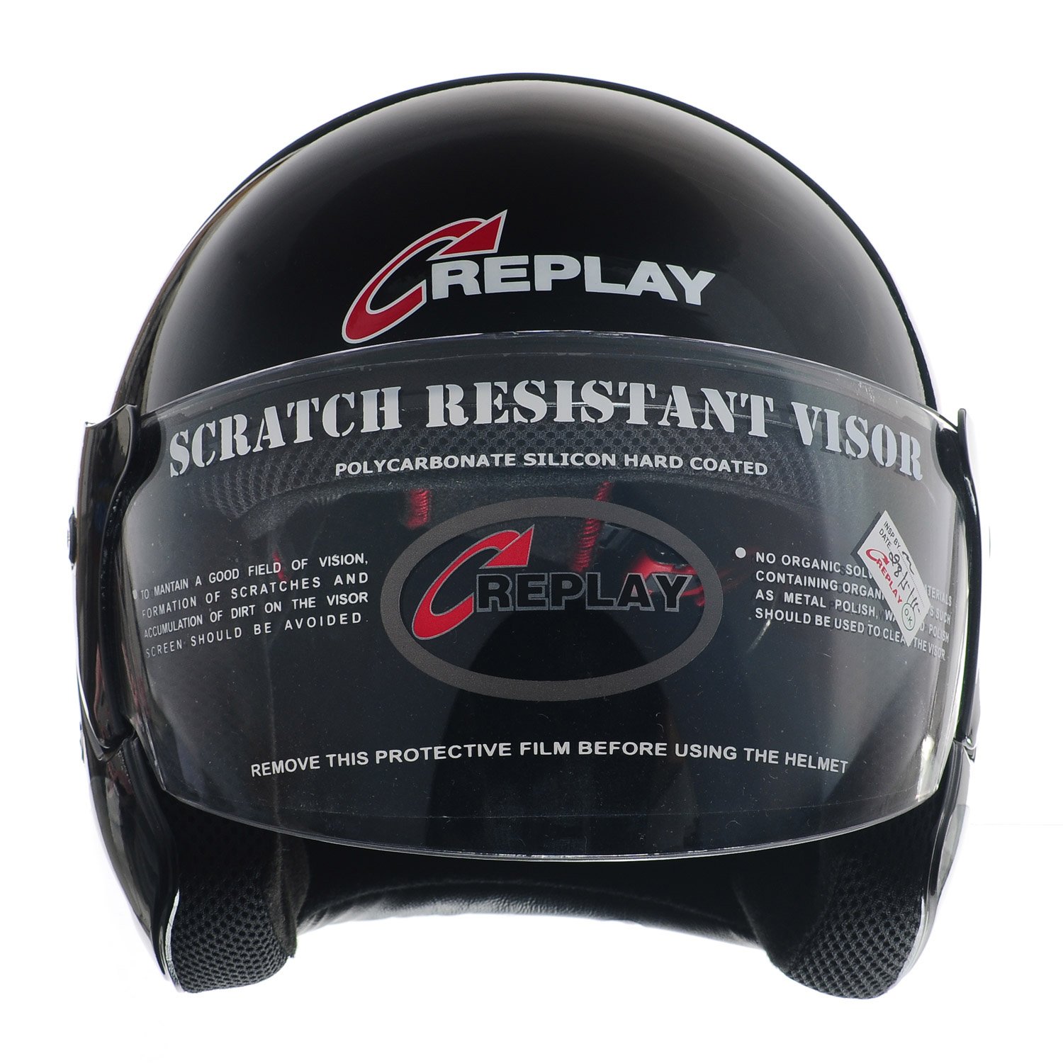 Replay Open Face Helmet Essex Hit Plain with Clear Visor (Black)